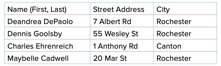 The following patients missed their appointments and we need to contact them alphabetically by last name.